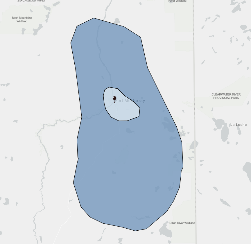 Peter Pond Mall is the only regional shopping centre in the trade area, located in the heart of downtown on the corner of Franklin Avenue and Hardin Street, 440 kilometers northeast of Edmonton, Alberta, Fort McMurray.