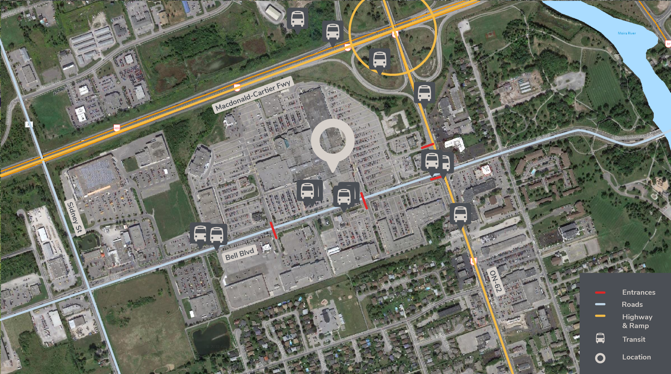 Quinte Mall is located in the Quinte Region, which is strategically located along the busy Highway 401 corridor between Montreal & Toronto and within close proximity to the U.S./Canada International border.